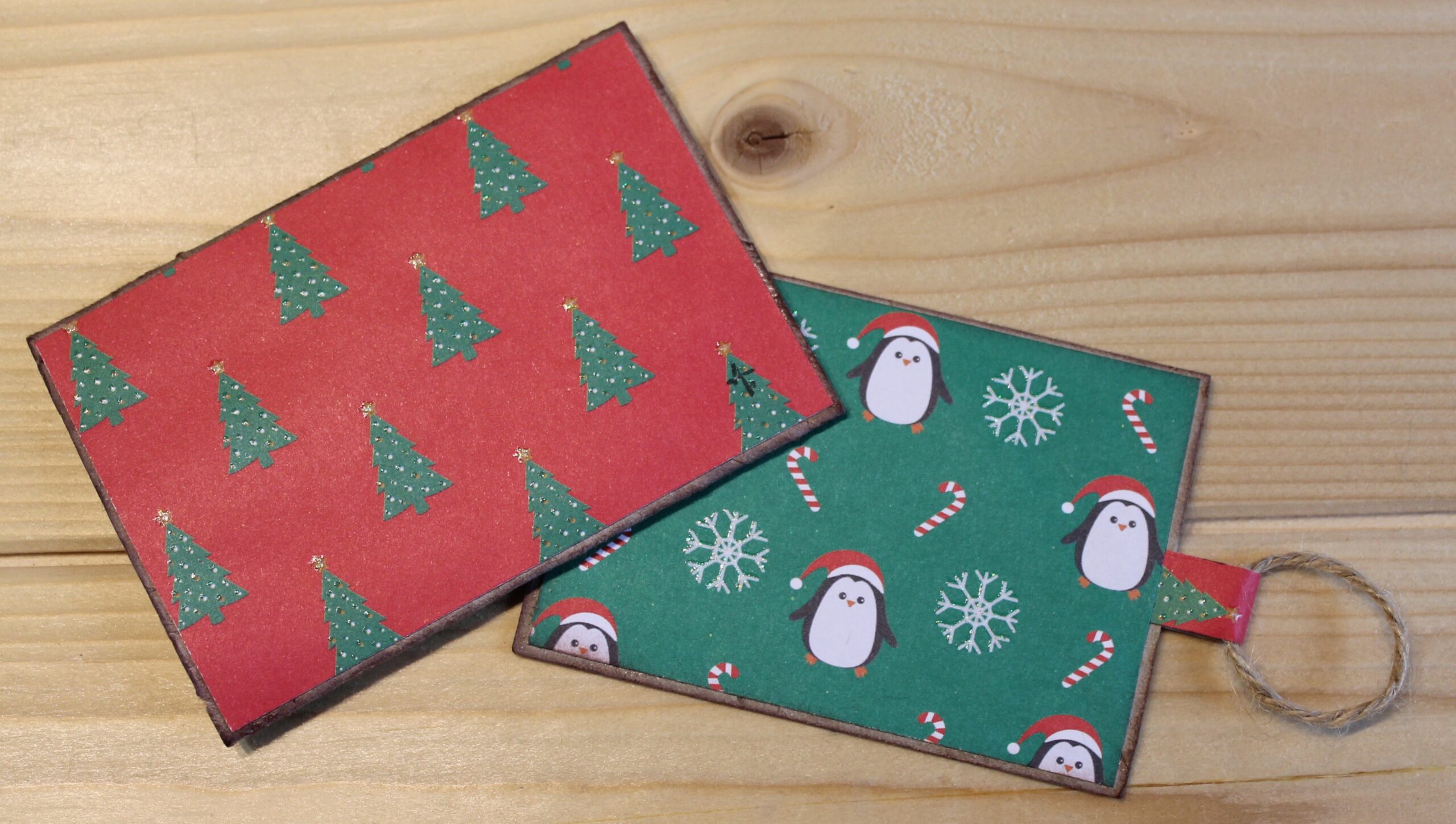 Cette petite carte étui Pingouins de Noël est pensée pour accompagner un bouquet de fleurs ou un petit présent qu’on offre lors d’une invitation à diner, lors du repas de Noël.