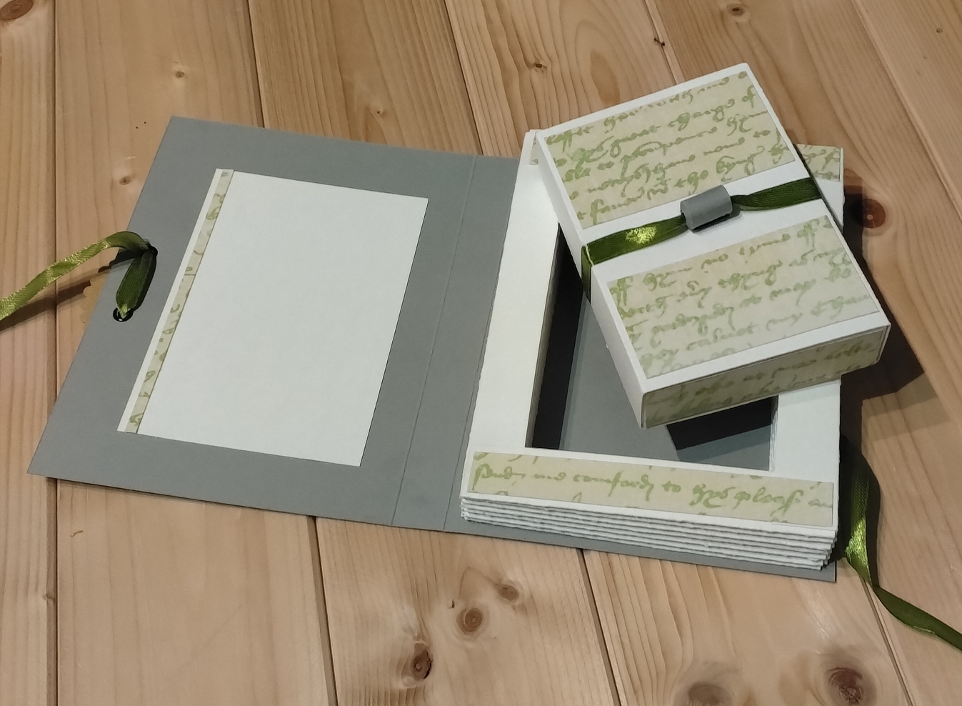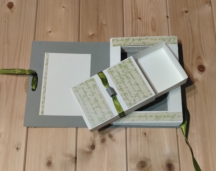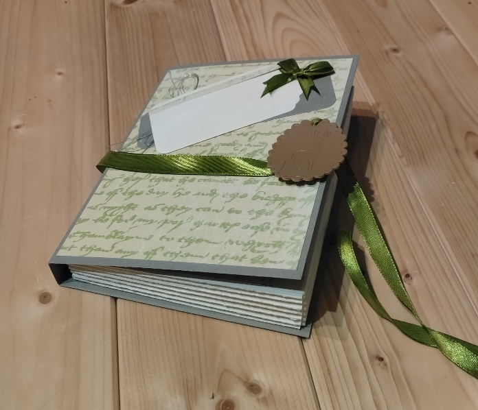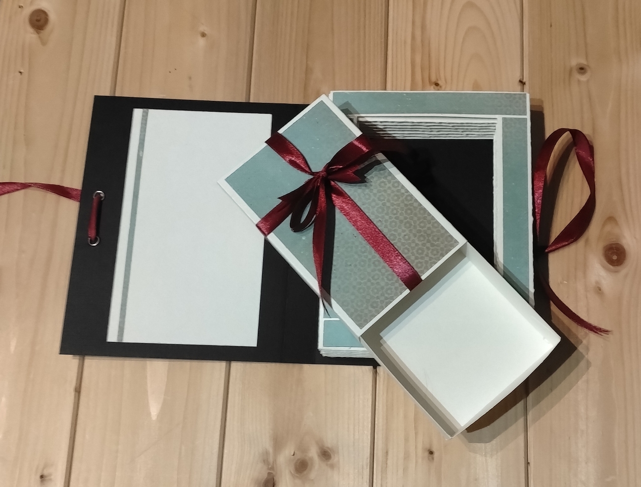 En effet, le bloc en accordéon donne l’illusion d’un livre. Mais lorsque l’on dénoue le ruban on découvre sur la page de gauche, un espace pour rédiger un petit message personnalisé. Sur la droite, au centre de cet accordéon, une petite boite cadeau, à l’intérieur de laquelle, on peut offrir une carte cadeau, de l’argent, un petit message empli d’amour ou d’amitié, ou encore un petit bijou.
