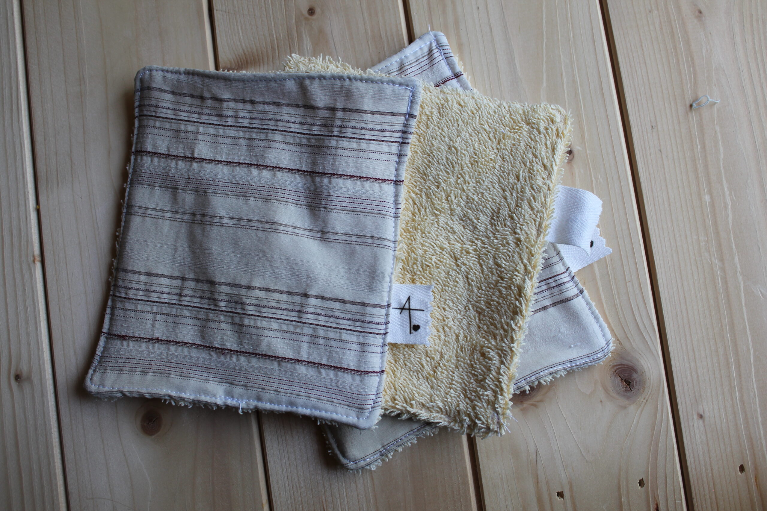 Les essuyettes de table  confectionnées en tissus et éponge de seconde vie, remplacent favorablement les éponges jetables. Nous sommes ici totalement dans l’esprit écoresponsable qui reflète l’esprit d’Atécoeur.
